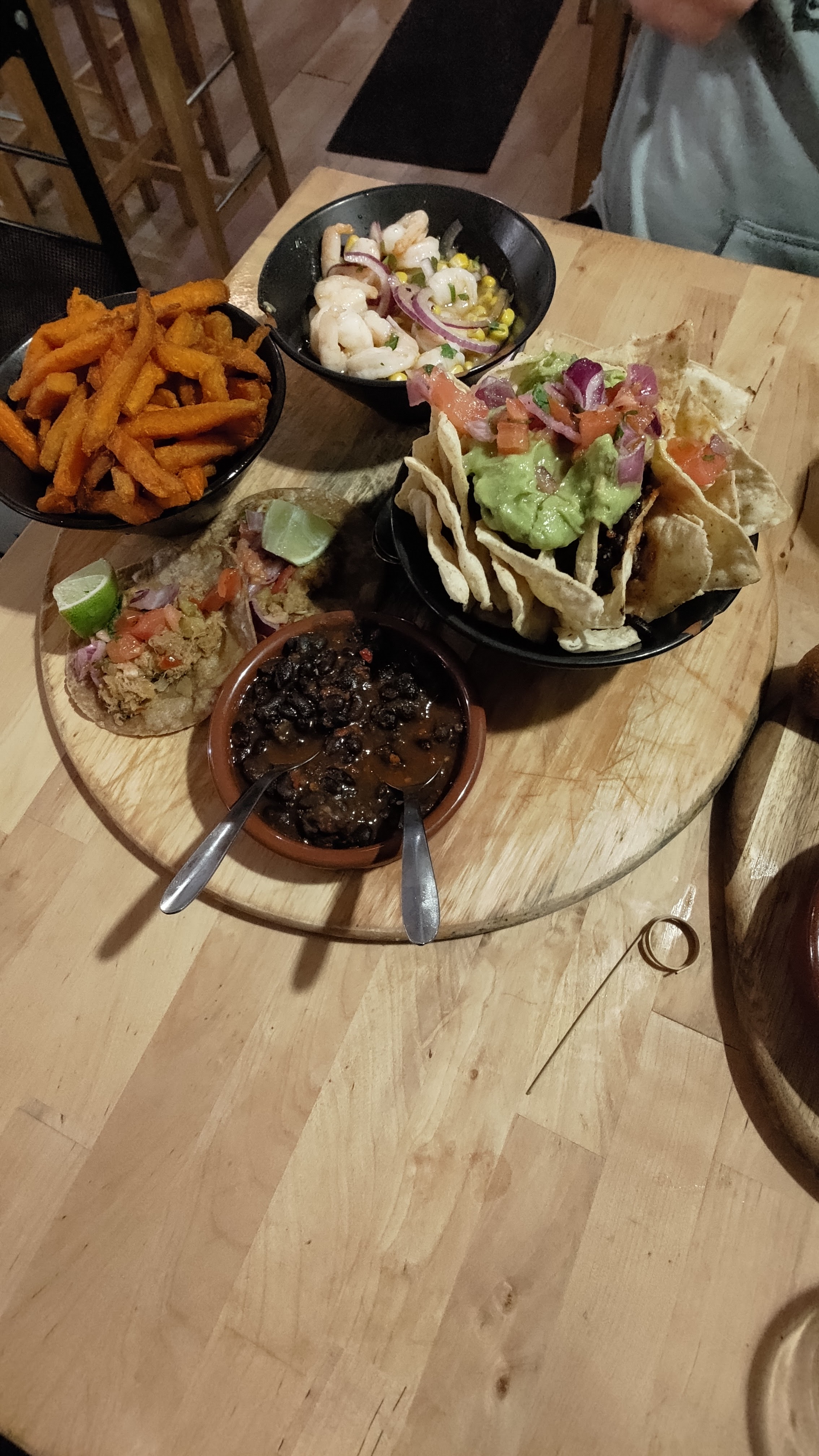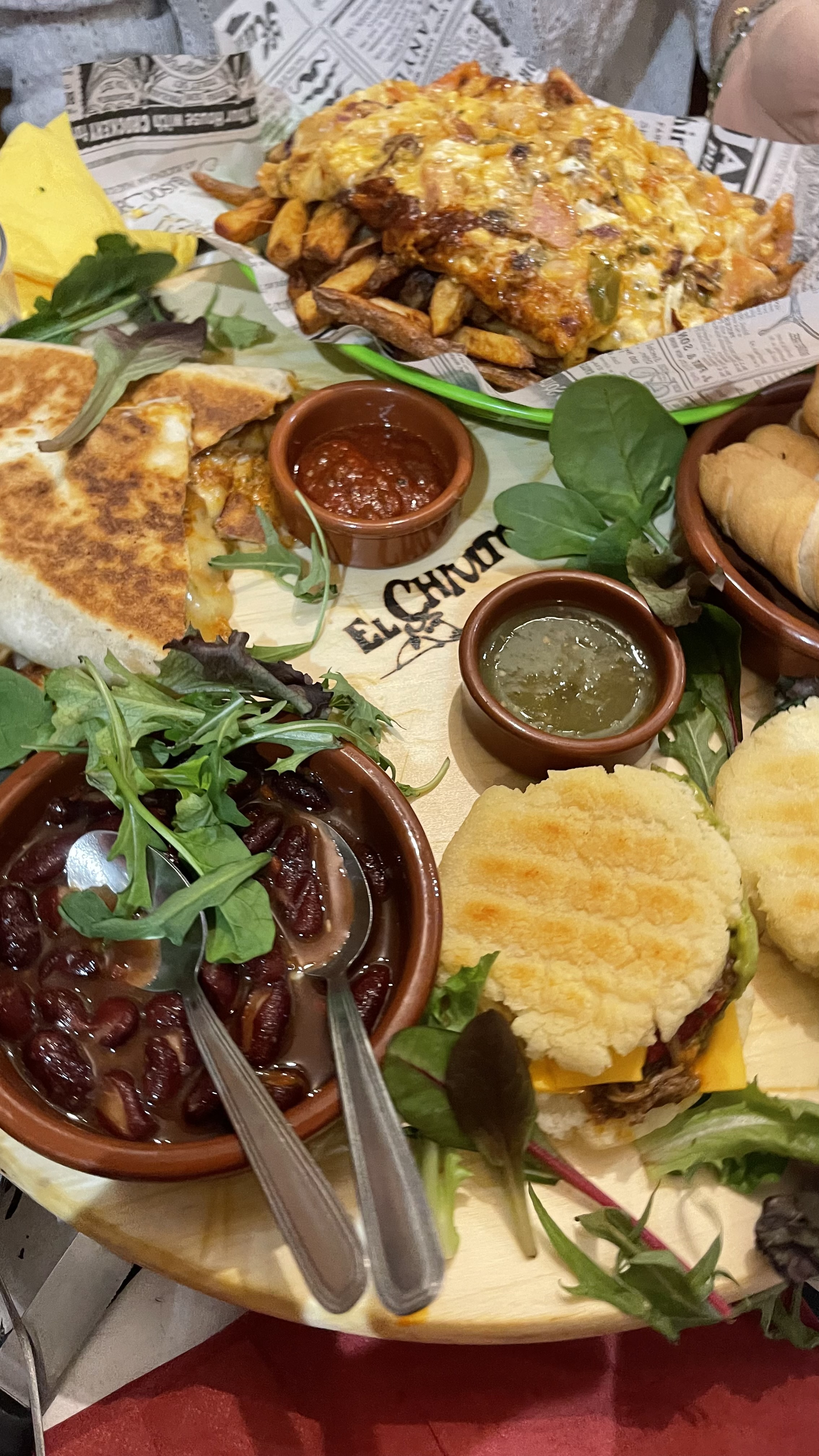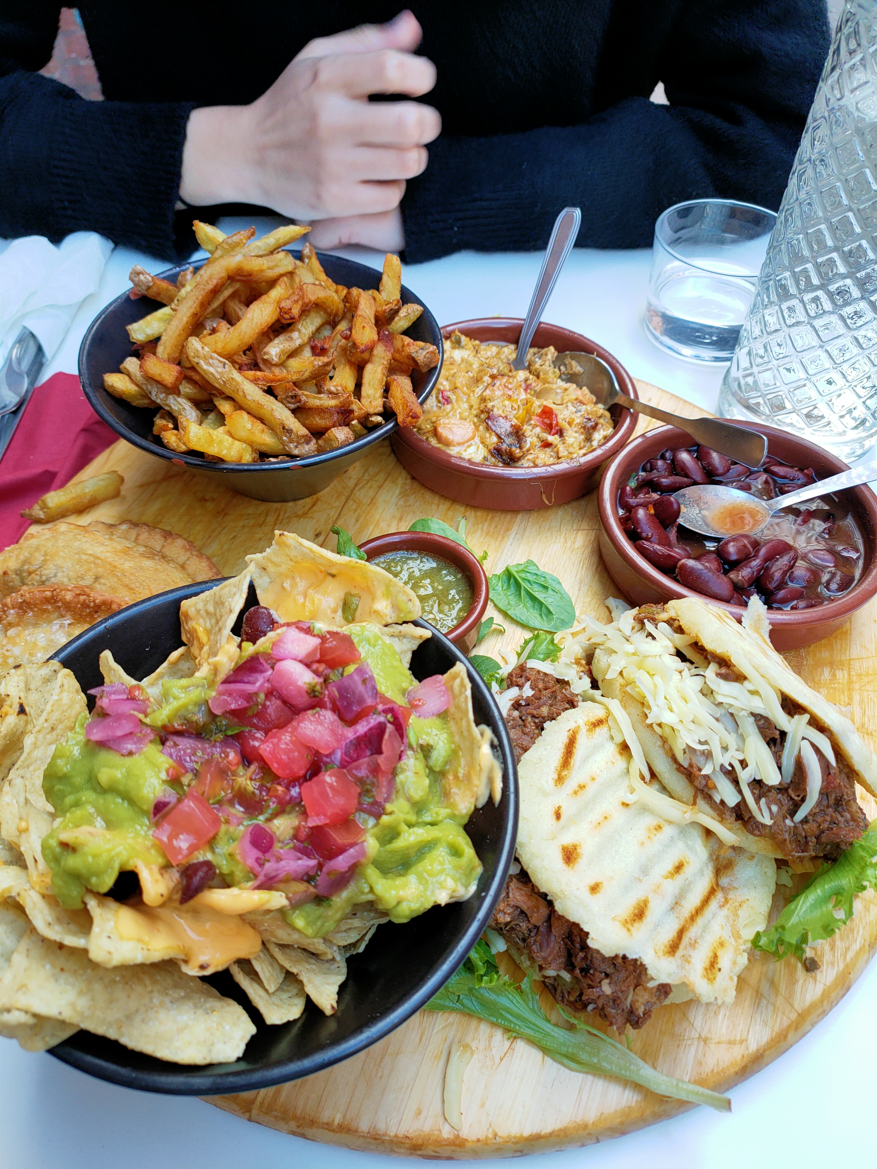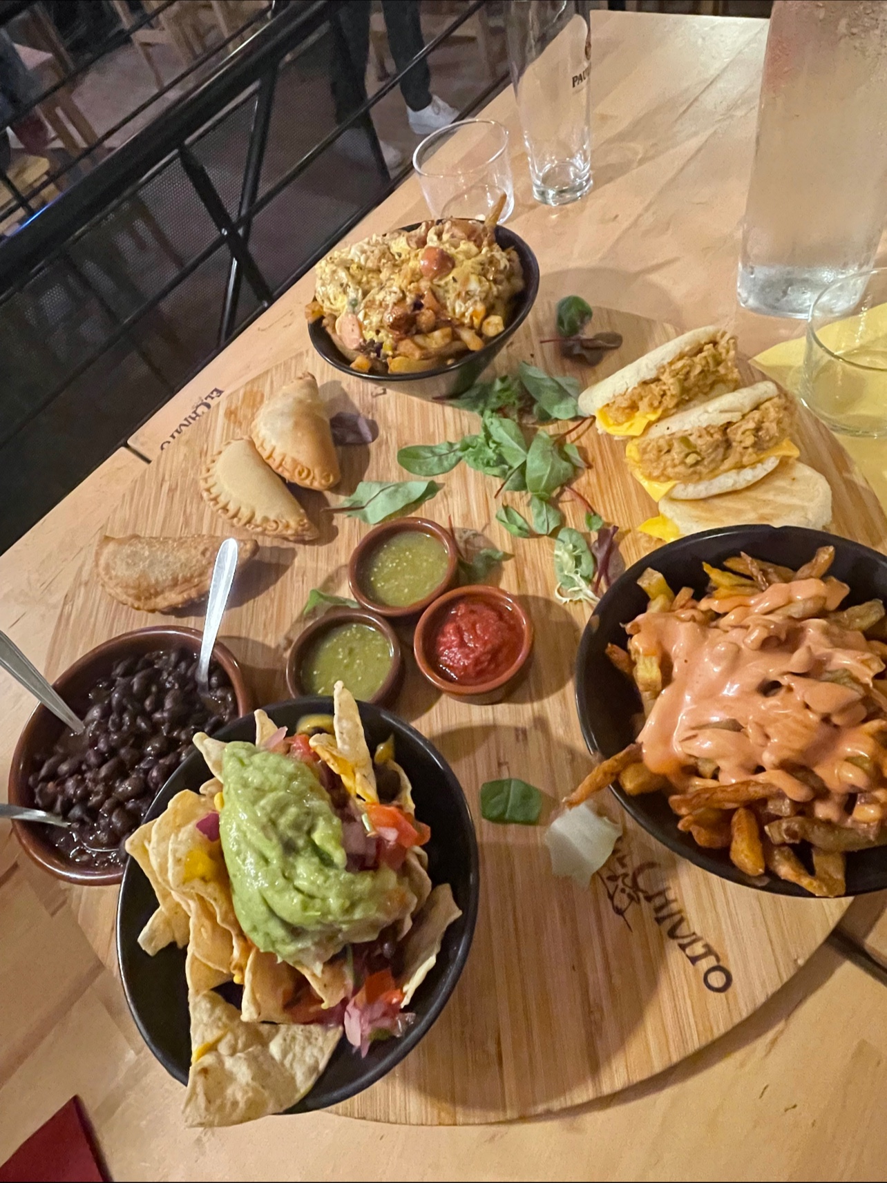 On a commandé à emporter :Un menu dégustation et une assiette empanadas. Des frites très molles, des empanadas pas bien garni, salade vieille, peu de guacamole et portions ridicules de pico de gallo et de haricots... très déçue. La viande est bonne dans le nacho. C’est tout! Trop cher pour la quantité et la qualité.