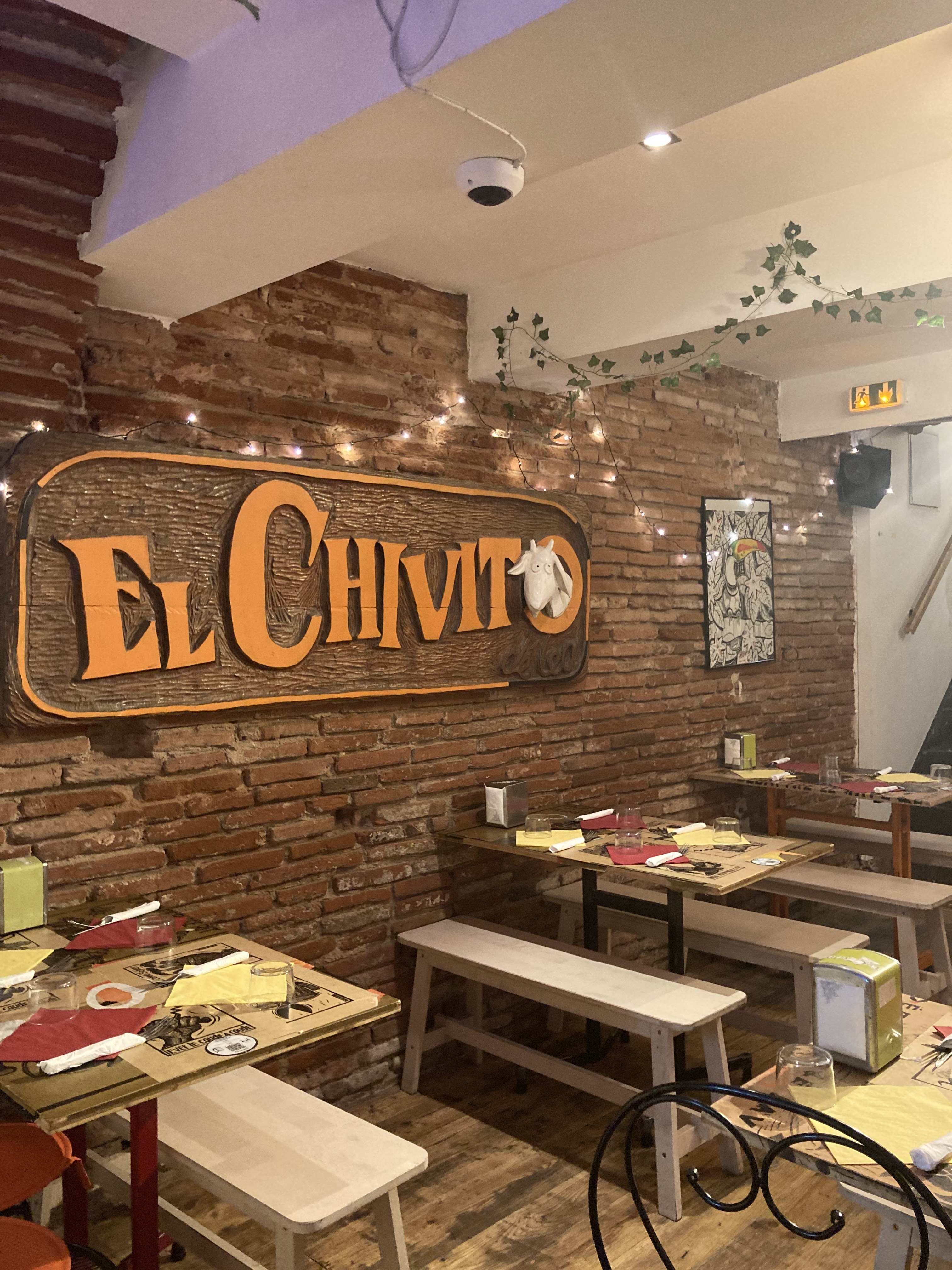 Nous avons été très bien accueillies au Chivito, avec le sourire, la bonne humeur et la convivialité ! Les tapas sont copieux et faits maison, bien présentés et à un prix raisonnable (la sangria est aussi très bonne...) ! Le lieu est vraiment sympa, très cosy et bien décoré (tables en bois aux multiples couleurs, jolis tableaux et photos, petites bougies...). En plus du service de qualité, la brique toulousaine et la musique (cumbia, rumba, tango...) participent également à la bonne ambiance qui s'y trouve !