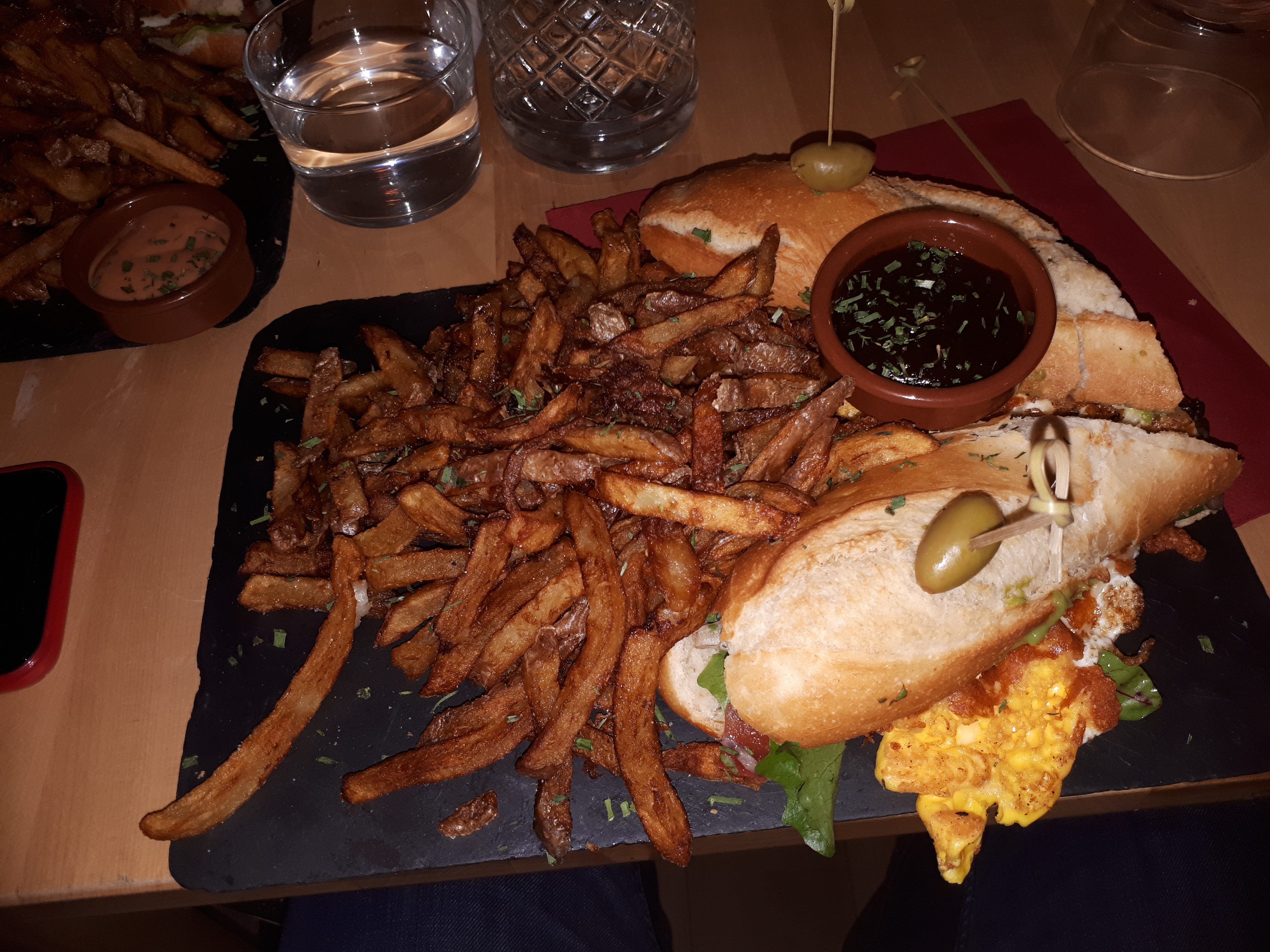 Je mets rarement de mauvais avis mais pour le coup la qualité de service est à revoir. Quand on sait qu’on est seul à servir pour tout le resto, on peut décemment refuser une table supplémentaire. Plus d’1h d’attente pour faire des sandwichs-frites, qui plus est arrivent avec l’un des ingrédients principaux qui manque (impossible de le signaler puisque le serveur est trop occupé), et sans excuses de sa part malgré les remarques à la fin. Dommage car la nourriture était plutôt bonne.